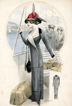 De periode 1908–1918 vormde een revolutionaire fase in de modegeschiedenis. Het traditionele korset werd afgelegd en de vrouwelijke silhouette veranderde naar vrijere, beweeglijkere vormen. Ontwerpers als Paul Poiret en Coco Chanel introduceerden soepele stoffen, felle kleuren en praktische kleding die aansloot bij de groeiende emancipatie van vrouwen. Mode weerspiegelde de sociale ongelijkheid van die tijd: waar de elite zich hulde in luxueuze creaties uit Parijs, waren emigranten en arbeiders aangewezen op eenvoudige, vaak zelfgemaakte kleding. Het contrast werd op de Titanic letterlijk zichtbaar tussen de eerste klasse met baljurken en avondkostuums, en de derde klasse waar men in streekdrachten en stevige werkkleding reisde.